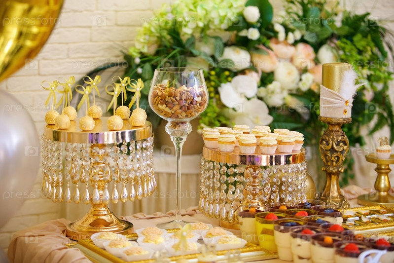 Сладкий стол кэнди-бар на праздник в честь свадьбы или детского праздника