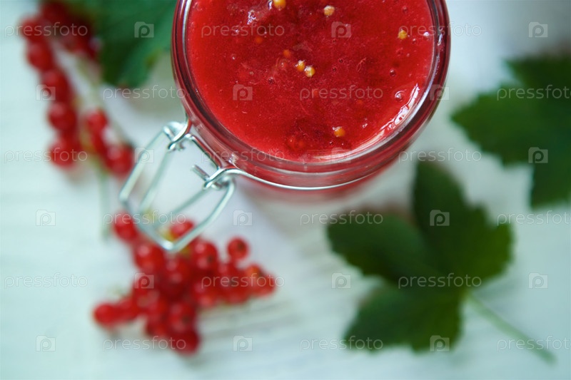 Стеклянная банка варенья из красной смородины