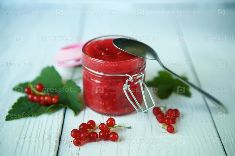 Стеклянная банка варенья из красной смородины