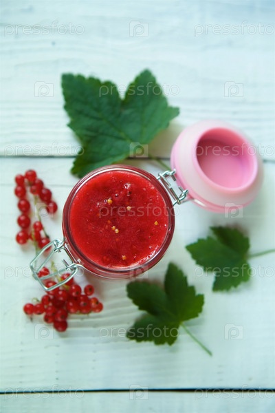 Стеклянная банка варенья из красной смородины