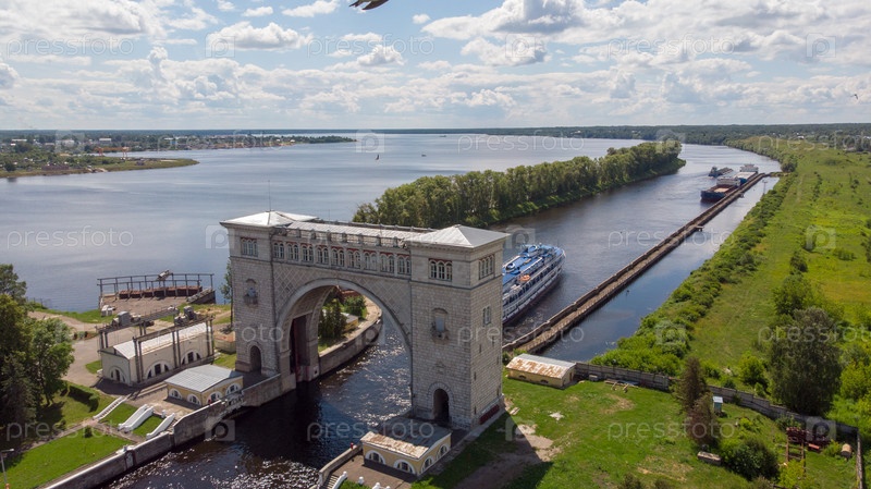Арка судового шлюза Угличской ГЭС на Волге