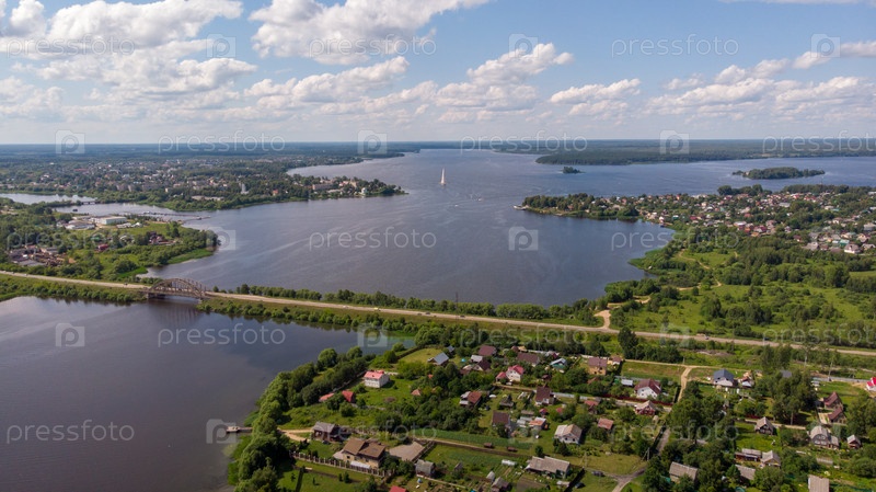 Затопленная колокольня и горбатый мост около поселка достопримечательность Калязина на Волге