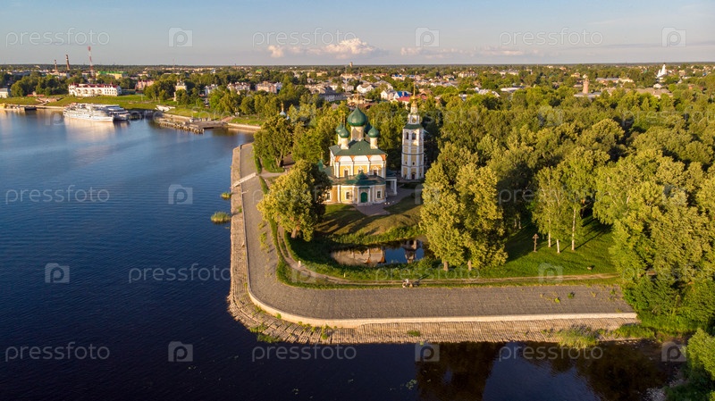 Храм и круизные теплоходы Угличский Кремль на Волге