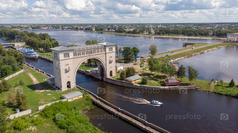 Катер из судового шлюза Угличской ГЭС на Волге