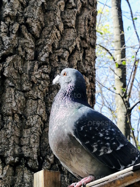 Голубь с клювом в пушку в лесу
