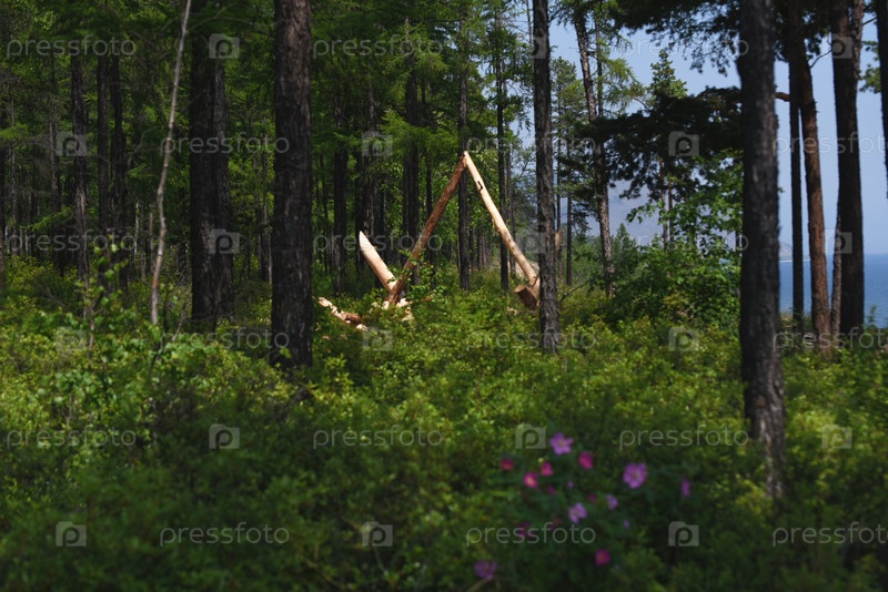 Деревянная постройка в лесу