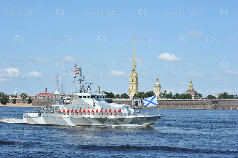 Боевой корабль в водах реки Невы против Петропавловской крепости
