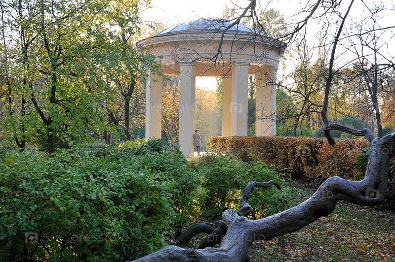 Осенний пейзаж - парк с опавшими листьями