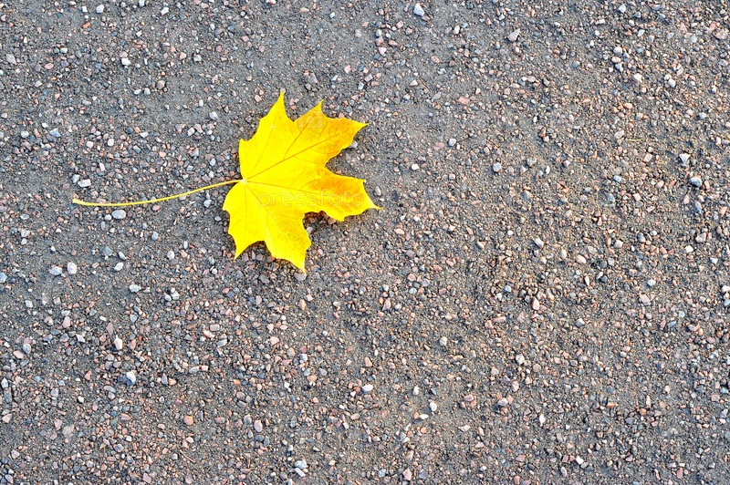 Желтый кленовый осенний лист на тропинке