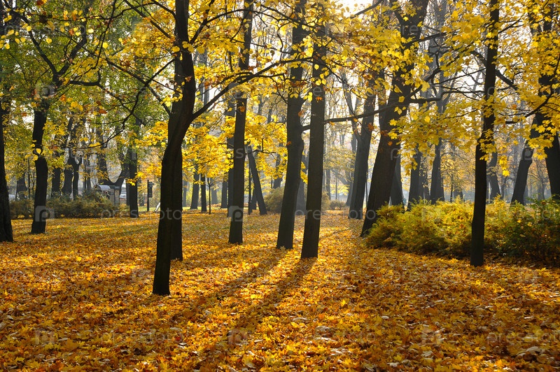 Осенний парк с опавшими листьями