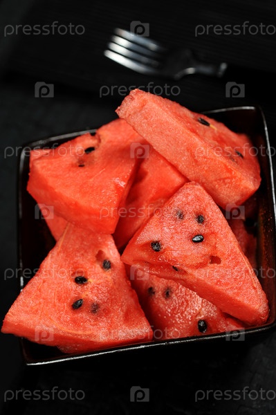 Кусочки арбуза в черной миске