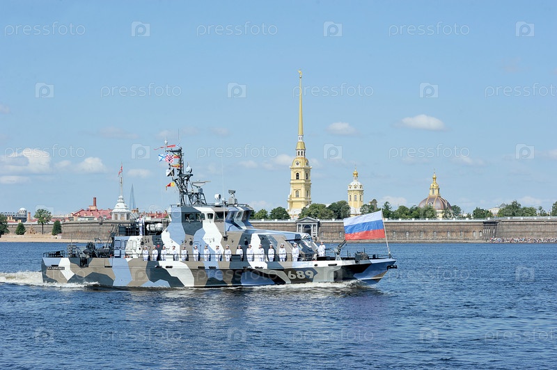Боевой корабль в водах реки Невы против Петропавловской крепости