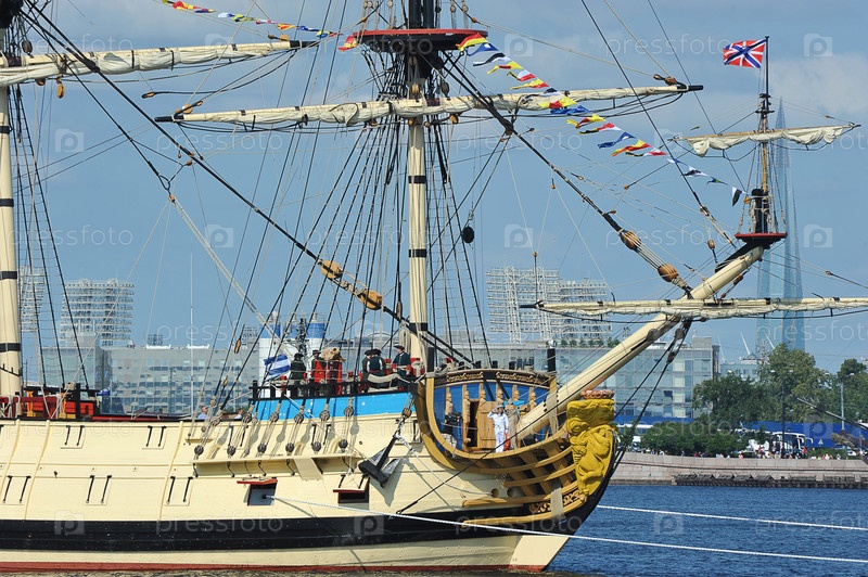 Боевой корабль "Полтава" в акватории Невы - подготовка ко дню ВМФ