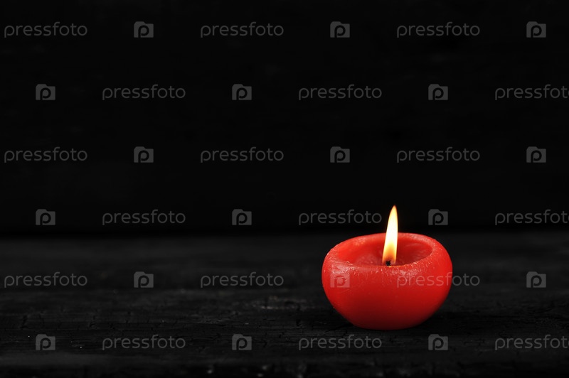 Красная свеча с горящим огнем на черном