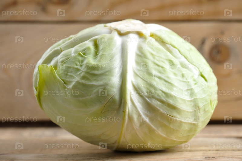 Целый кочан капусты на деревянном фоне