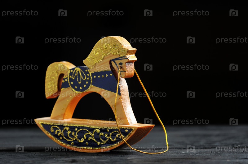 Деревянная игрушечная лошадка на темном фоне