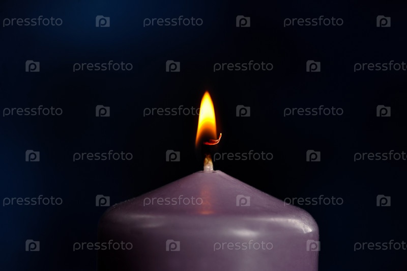 Горящая фиолетовая свеча крупным планом