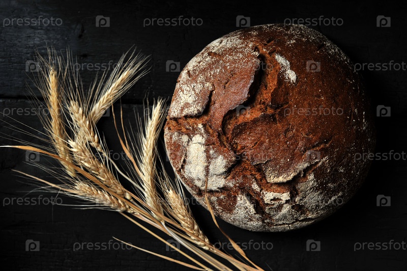 Ржаной хлеб, целая буханка и колосья