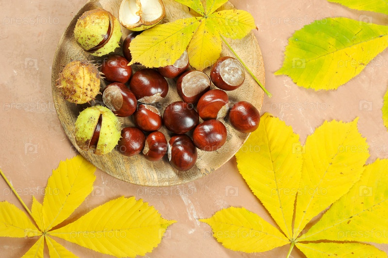 Каштаны с кленовыми осенними листьями
