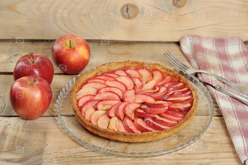 Яблочный пирог на деревянном фоне