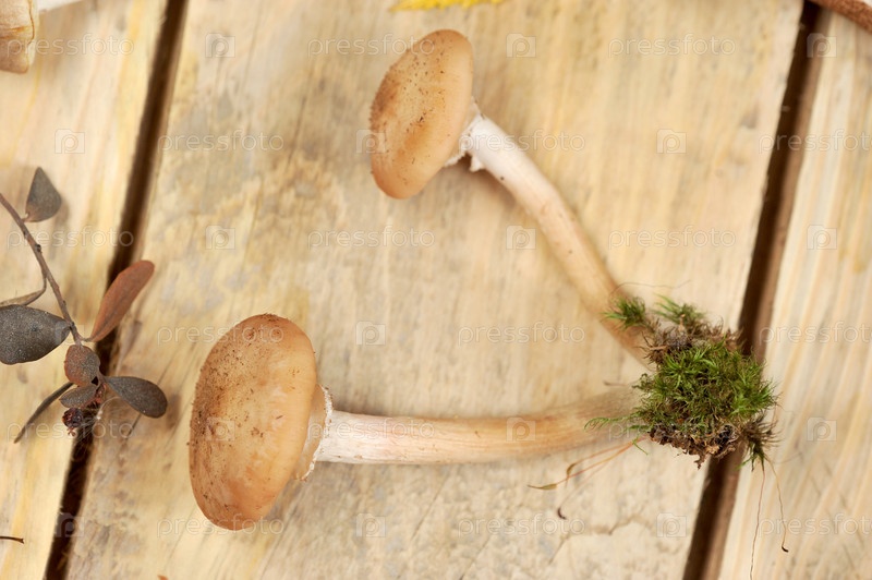 Грибы на деревянном деревенском фоне