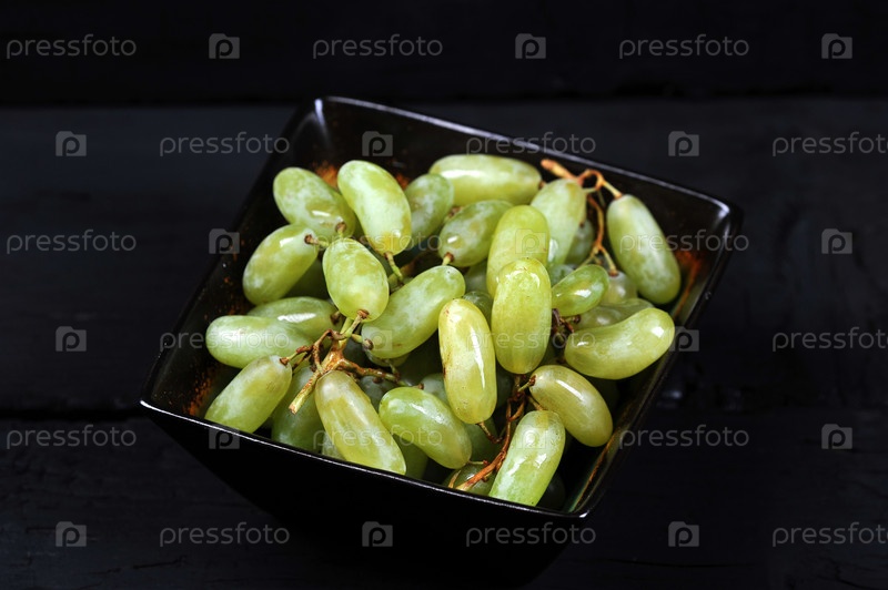 Вкусный свежий зеленый виноград в тарелке