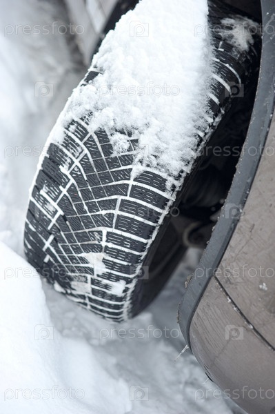 Зимняя резина на машине зимой