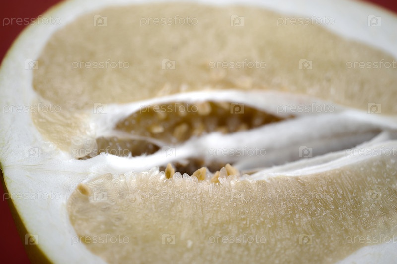Половина помело на красном фоне