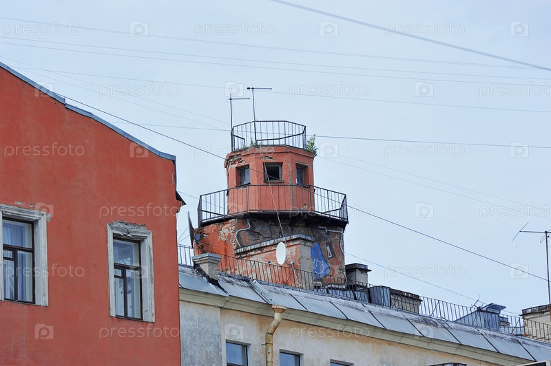 Старинная разрушенная наблюдательная пожарная вышка в доме на реке Мойке