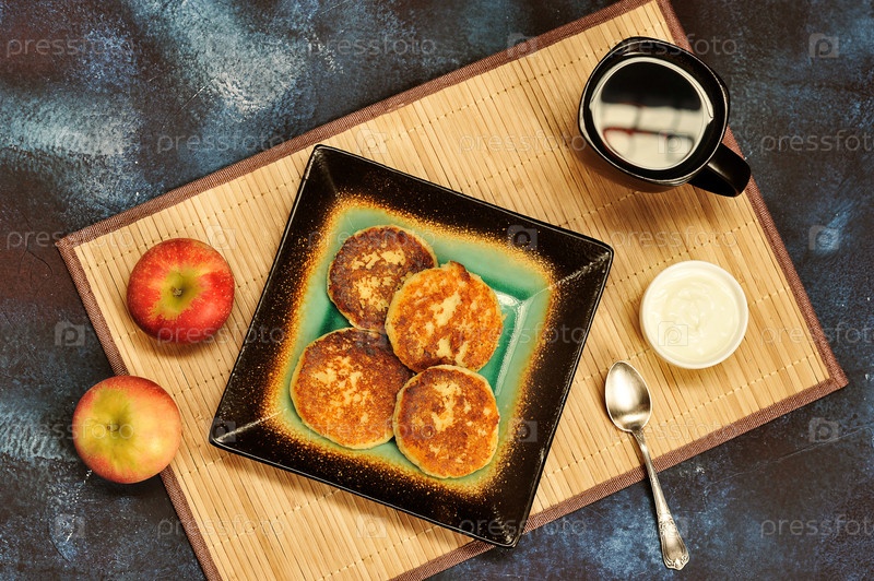 Свежеиспеченные сырники со сметаной