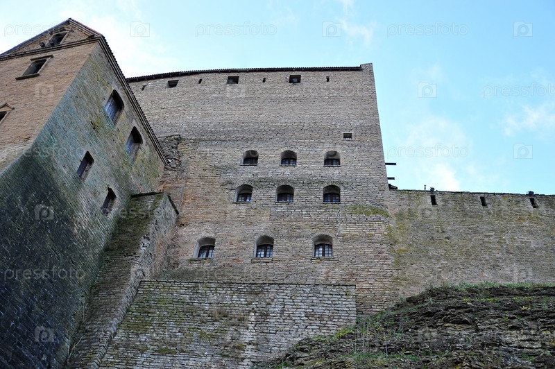 Стены старинного замка в крепости в Нарве