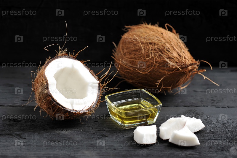 Цельный кокос, расколотый кокос и кокосовое масло