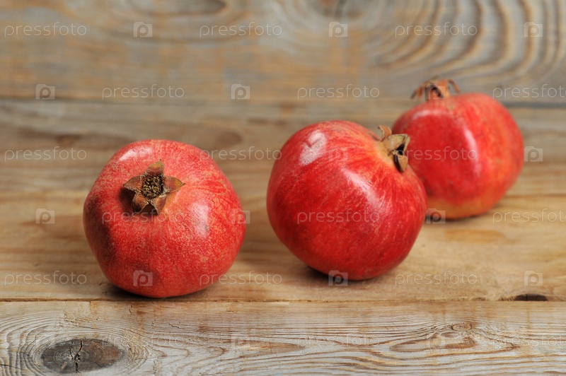 Красные гранаты на деревянном фоне