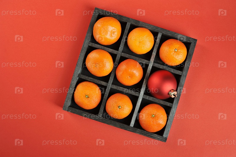 Мандарины в деревянной коробке