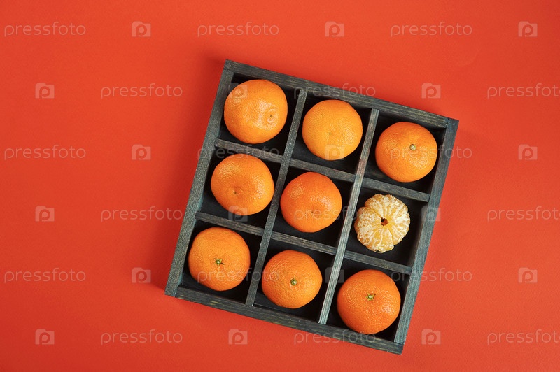 Мандарины в деревянной коробке