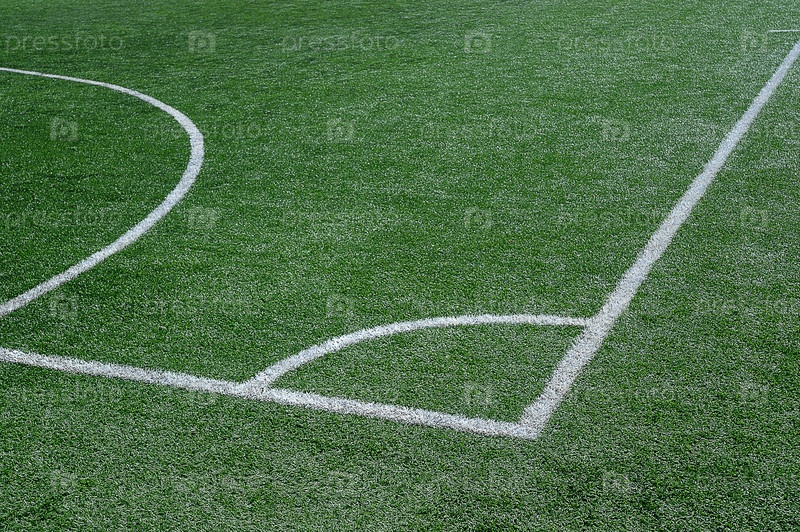 Зеленое футбольное поле с белыми линиями разметки