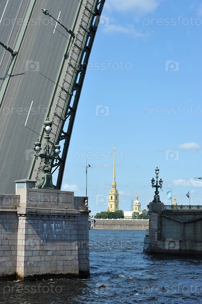 Разводной лист Троицкого моста и Петропавловской крепости в Санкт-Петербурге