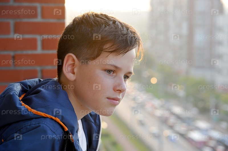 Маленький мальчик смотрит с балкона