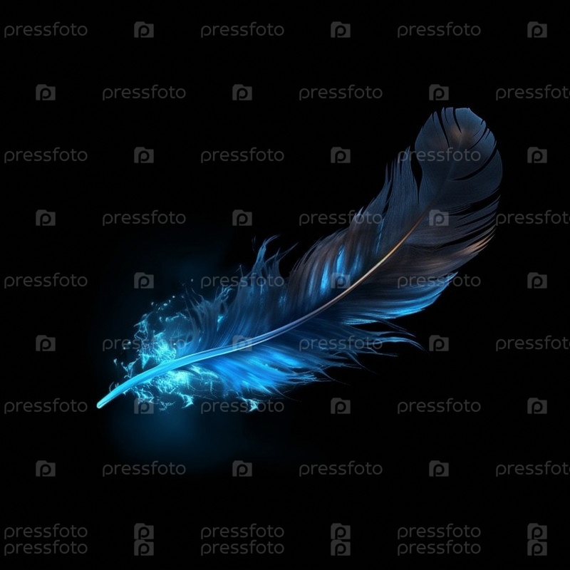 Красочная иллюстрация таинственного пера, окутанного голубым свечением