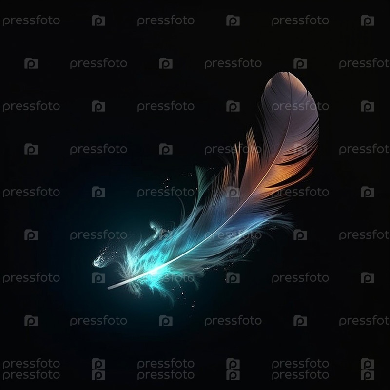 Красочная иллюстрация таинственного пера, окутанного голубым свечением