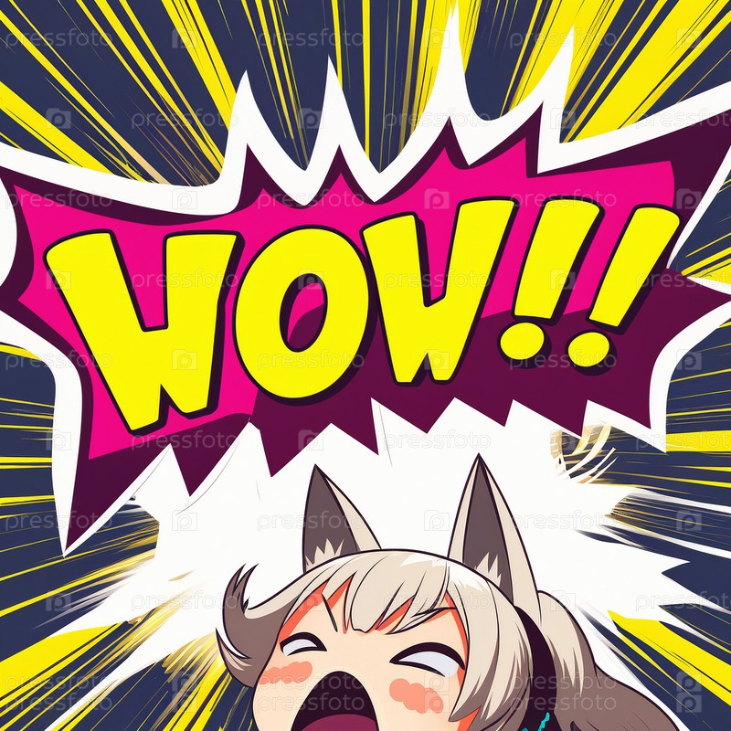 Мультипликационный знак взрывных облаков с миром WOW в стиле аниме