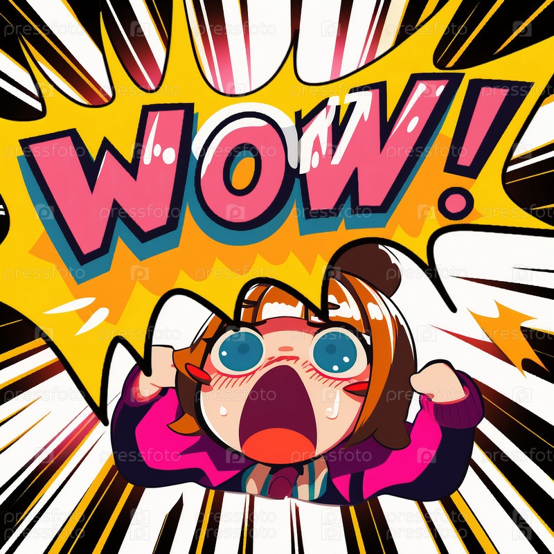 Мультипликационный знак взрывных облаков с миром WOW в стиле аниме