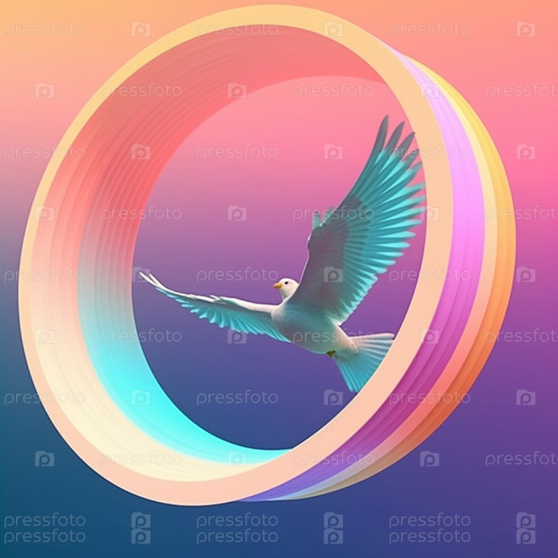 Страшная абстрактная иллюстрация с белым голубиком, летящим по кольцу