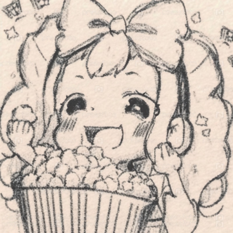 Девушка с попкорном в стиле аниме. карандашный эскиз