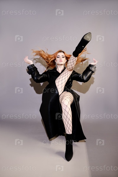 Женщина в кожаном плаще