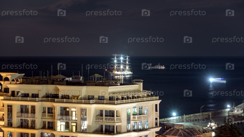 Вид на Ялтинскую бухту ночью с набережной