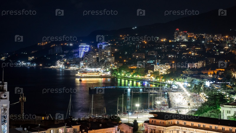 Вид на Ялтинскую бухту ночью с набережной