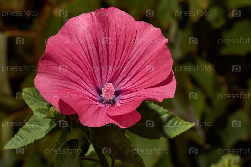 Лаватера цветет на лужайке в саду.Последние цветки лаватары перед наступлением холода