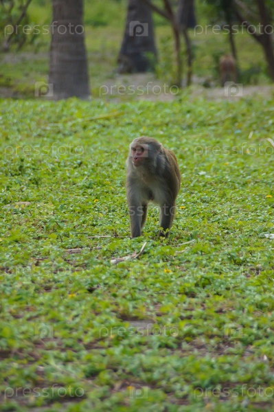 Обезьяна бежит по поляне (Вьетнам, остров обезьян)