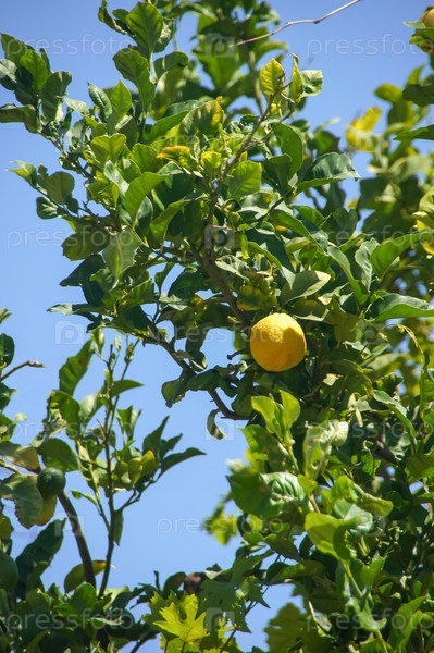 Спелый лимон (цитрус) на ветке